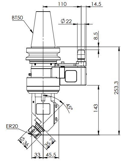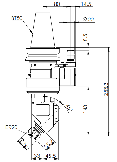 ◎?BT50-ER20 45° Angle Head (AHD Type)