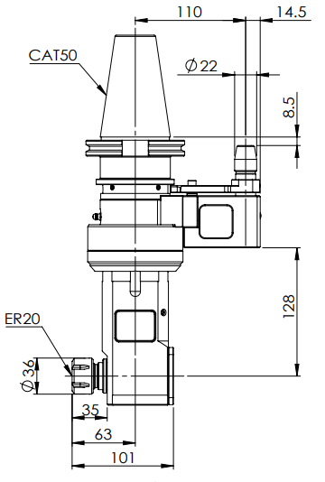◎?CAT50-ER20 90° Angle Head-Longer (AHD Type)